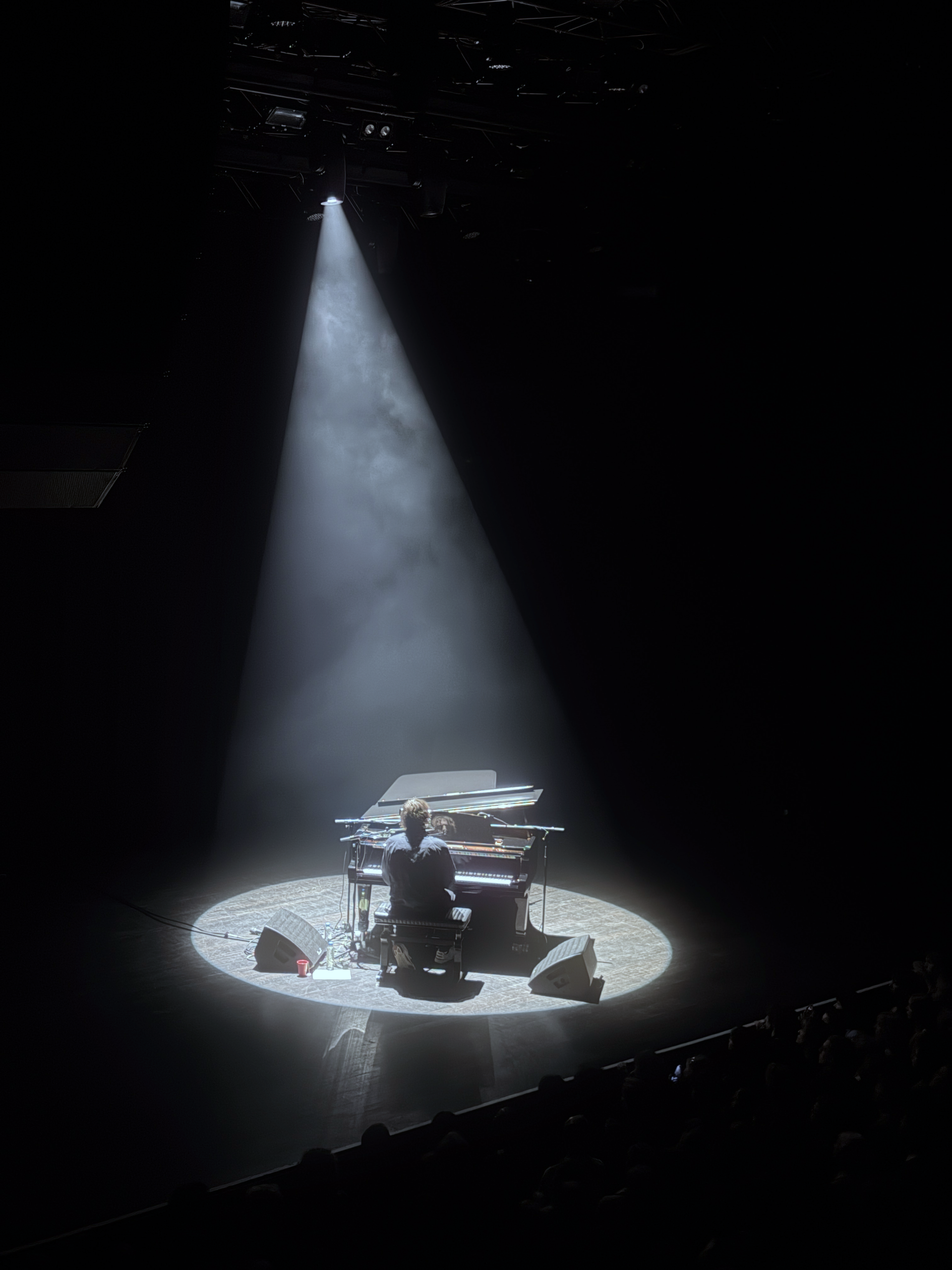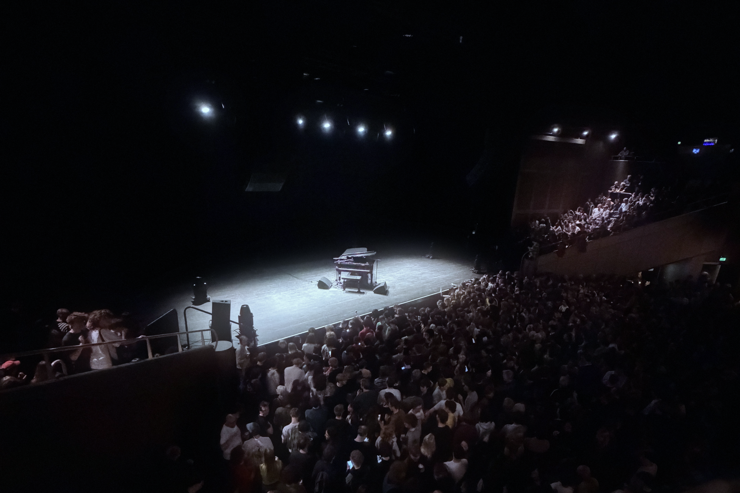 On a barebones stage, in front of a black curtain backdrop, there is nothing else but a grand piano, a chair, two stage monitors, and some stage lights. Possibly the most minimal setup of any sold out show I’ve been to. The stage at TivoliVredenburg’s Ronda hall is (and I say this with no ill intent), compared to the other venues Cameron is playing on this short solo tour, architecturally and visually unremarkable. I kept wondering why on earth they didn’t book him in a church-type venue, or hell, even a real church. But all my doubts were laid to rest as soon as the house lights went out.
